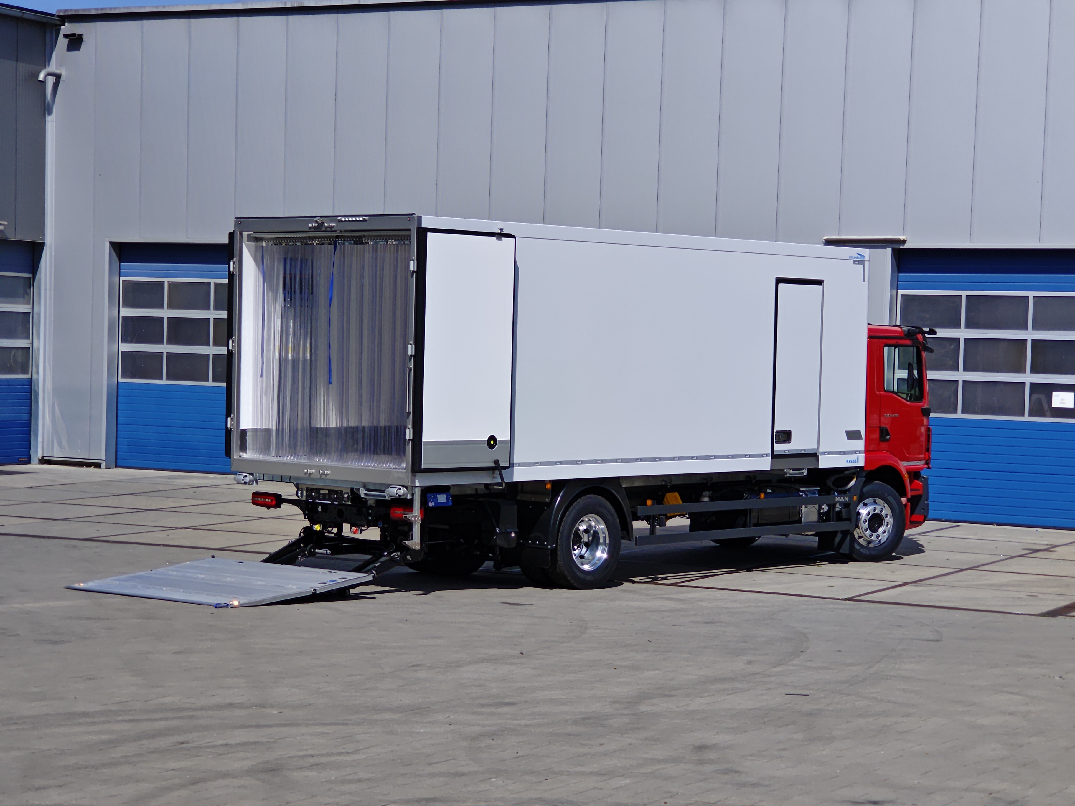 Ein weiteres Fahrzeug kann in Halle 3 an Stand A 321 begutachtet werden. Hier präsentiert KRESS Fahrzeugbau seine neueste Innovation in Gestalt der CoolerBox2.0-2500. Auf dem Basisfahrgestell eines MAN TGM 19.290 bietet der ATP-geprüfte Tiefkühlaufbau eine Innenbreite von 2500 mm inkl. Zertifikat FRC. Die innovative Konstruktion ermöglicht den Transport von drei Europalletten oder drei Rollcontainern nebeneinander, ohne zusätzlichen Aufwand bei der Beladung. In Kombination mit der vollelektrischen Kühlung Thermo King E-1600 wurde das 18-Tonner Verteilerfahrzeug speziell für die Gastro-Zulieferbranche konzipiert und kombiniert durch sein optionales Zwei-Kammer-System Merkmale für den Tiefkühl- und den Frischediensteinsatz.